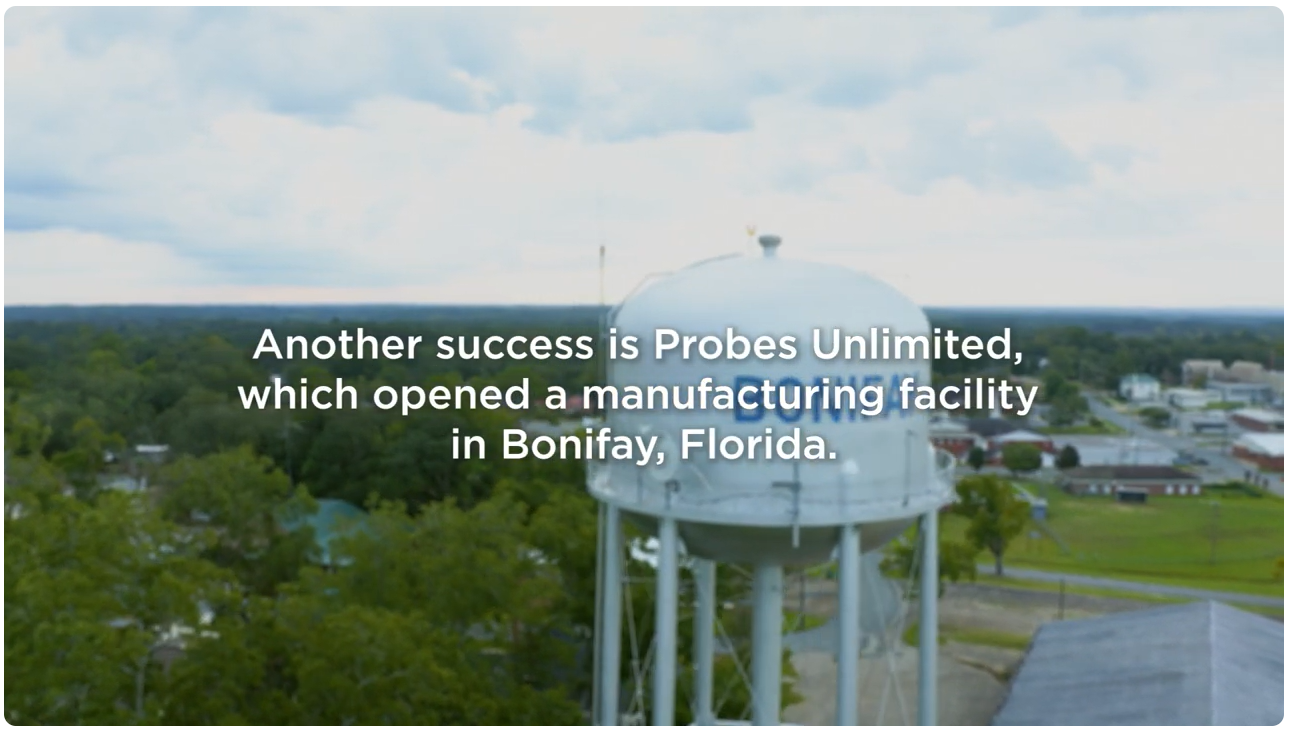 Our regional partner in economic development, Florida's Great Northwest connects companies in our target industry sectors. Bonifay's Probes Unlimited is one of two companies highlighted in this video that recently expanded to the area - Central Moloney and Probes Unlimited. HCDC is a proud investor in FGNW and we are excited to see this story told to expanding businesses across the globe. Click here to hear their story.